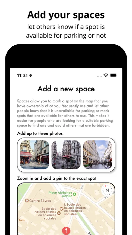 Spaces allows you to pin a spot on the map and add a label, description, photos and a message for other people to see.