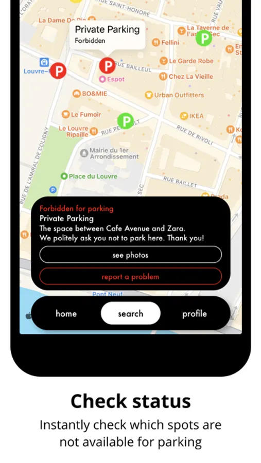 ● Leave a message for your parking space and let others know if your spot is forbidden for parking