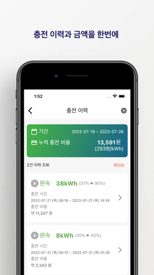 - 전기차 충전 요금을 간편하게 관리하여 충적 이력 및 누적 요금을 확인 할 수 있습니다.