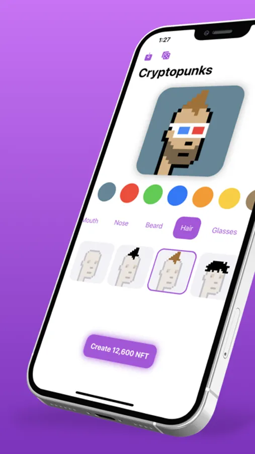 • Create your own NFT Collections from your images or create your own CryptoPunks.
