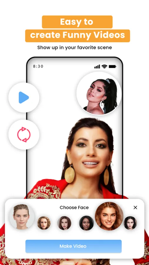 All you need is a selfie of yourself or choose photo from your gallery then you can swap your face to others like celebrities or movie characters in short videos.