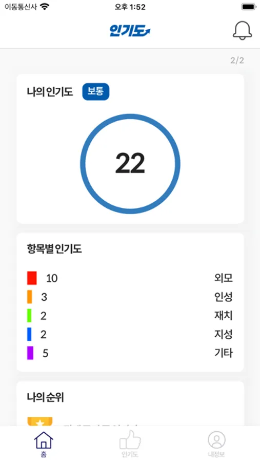 인기 관리 앱인 인기도는 자신의 인기 항목별 점수를 한눈에 확인할 수 있습니다.