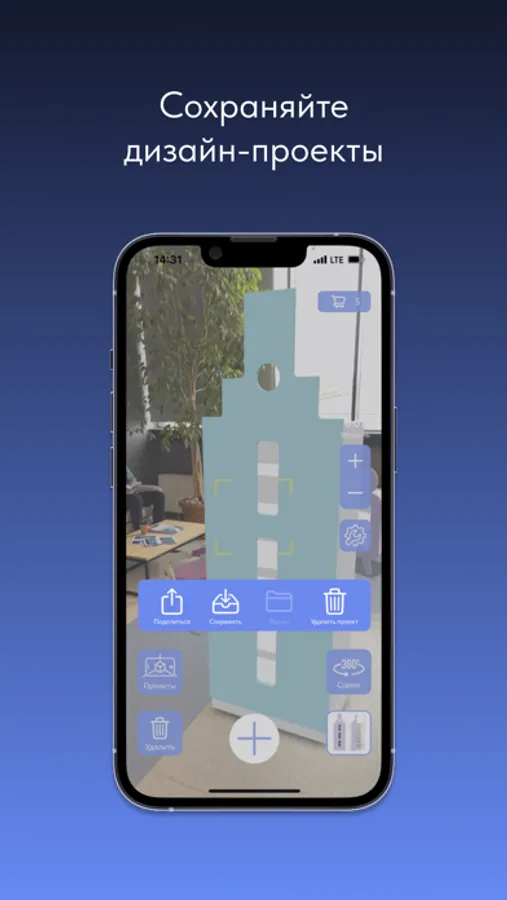 Создавайте, сохраняйте, делитесь проектами. Примеряйте готовые проекты от дизайнеров.