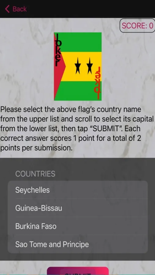 APF Connected is a well known strategy game played with 32 cards in Africa. You can practice your African countries and capitals knowledge with the Quiz mode. You will have to challenge the computer throughout a training mode to easily assess the game play. It is available in English, French, Chinese, Japanese, and Fon (Benin). The Marathon and Multi-players modes will only be available in the full version (AP Connected on Apple App Store) as well as the music.