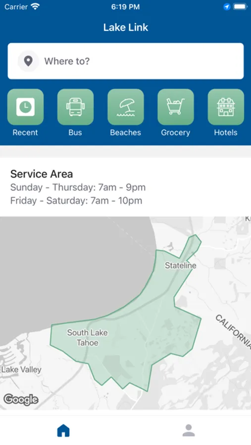 Lake Link is a complimentary on-demand transportation service. The service operates in South Lake Tahoe.
