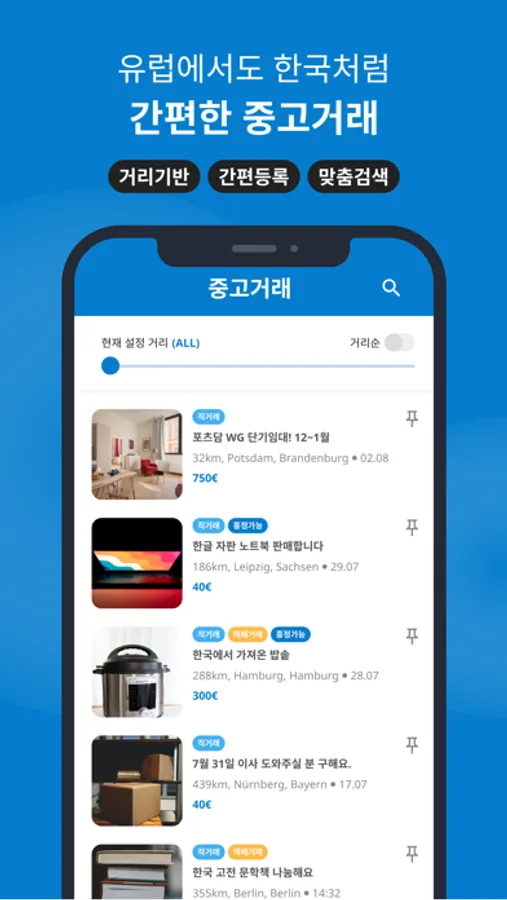 본인의 위치를 기반으로 한 중고거래와 지역에 맞는 정보를 얻을 수 있고 공유할 수 있는 커뮤니티 앱 서비스를 제공합니다.