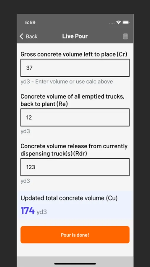 Each year, 2% to 10% (average of 5%) of the estimated 455 million cys produced nationwide is returned to the concrete plant or dumped in the landfill. Let Mudright help you reduce waste and stress with our innovative "Live Pour" calculator.