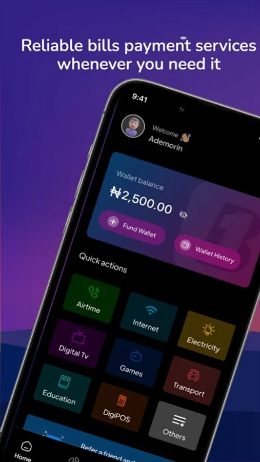The most versatile bill payment platform in Nigeria. Buy airtime for yourself and others, pay for electricity, purchase tickets, and top-up wallets all on BillerOne.