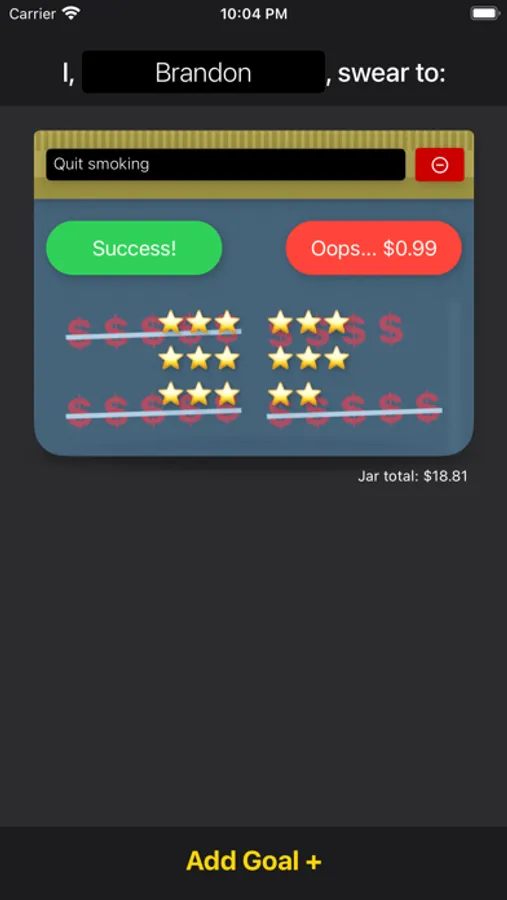 This app gives you the opportunity to use this technique. Based on the honor system, you can make a voluntary in-app purchase for your slip ups and missed goals.