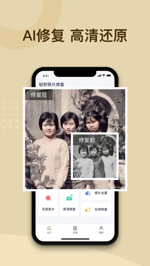 轻秒照片修复是一款残破模糊黑白老照片修复上色工具,基于领先的AI图像生成技术的在线照片增强软件,实现老照片、模糊照片、低分辨率照片的画质增强。