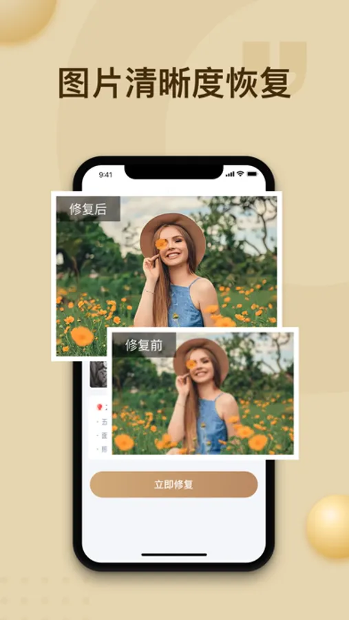 -使用人工智能技术,可以将模糊照片、低清照片、斑驳痕迹修复,并针对面部进行了高清还原修复。