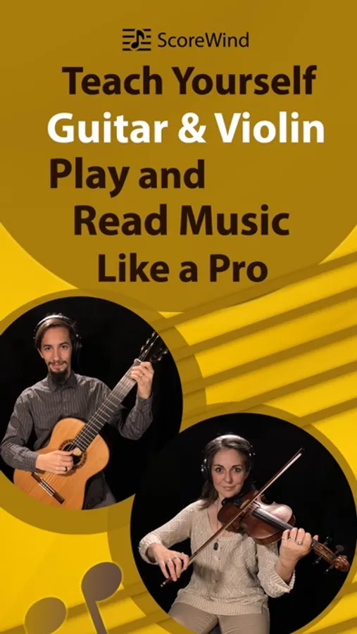 Learn to Play Guitar and Violin with ScoreWind's VideoScore! Together with ScoreWind teachers' step-by-step lessons, the VideoScore feature helps you learn to play and read music at the same time. This makes it easier for you to become skilled and comfortable with the instruments.