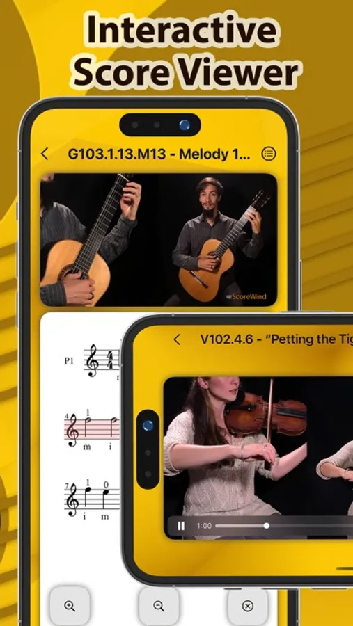 With ScoreWind's VideoScore, you can control the video during guitar or violin lessons and watch how the teacher plays. This makes learning techniques and improving your skills much easier.