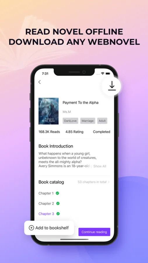 - Read novel offline: You can download each novel in order to read offline without any Wifi/3G required. Or you can read online to received daily updated novels.
