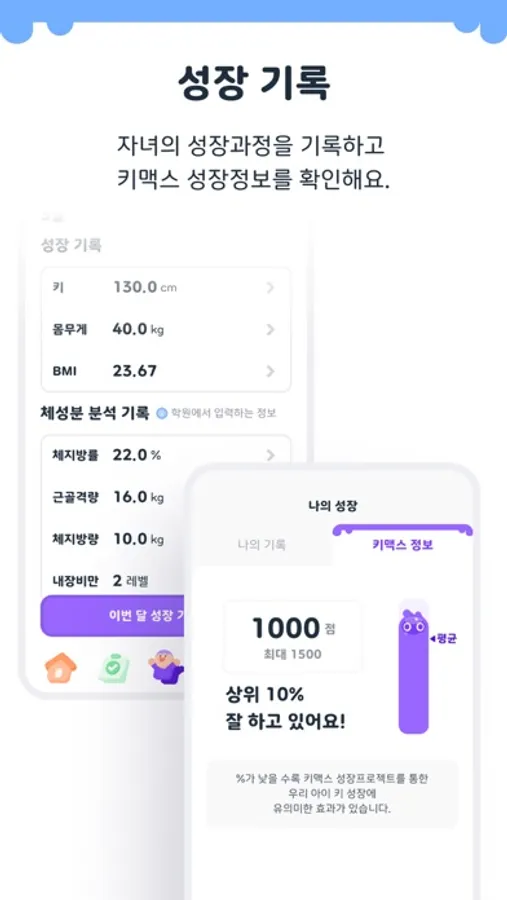 자녀의 성장과정을 기록하고 키맥스 성장정보를 확인해요.
