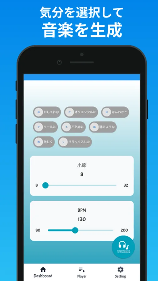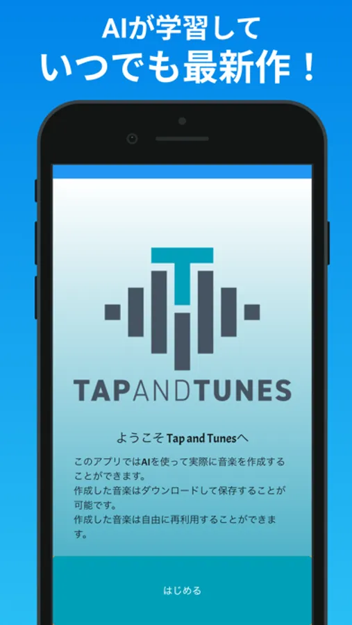 自由テキストを入力するとAIが世界で一つだけの楽曲を自動で作成します。
