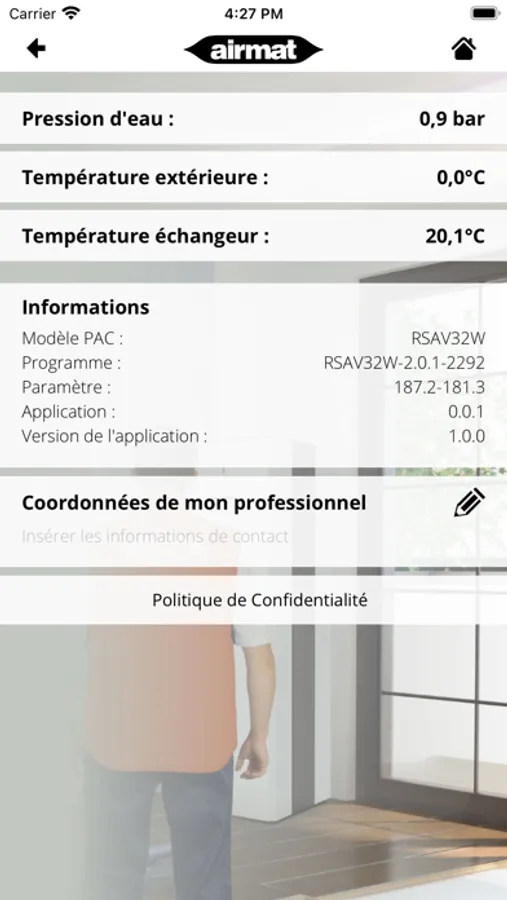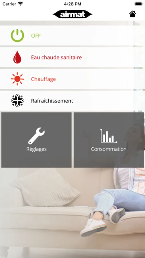 AIRMAT - POMPE A CHALEUR est l'application qui vous permet de contrôler votre Pompe à Chaleur AIR/EAU AIRMAT ou votre CHAUFFE EAU THERMODYNAMIQUE AIRMAT de manière simple et intuitive via votre smartphone.