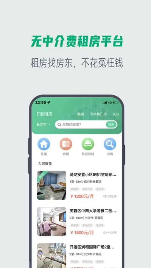 E圈租房,专注为用户提供真实、靠普、无中介费的房源,人工客服24小时服务,系统虚假中介费房源举报功能,确保房源真实无中介,依据用户位置自动定位,覆盖全国3000多个城市。