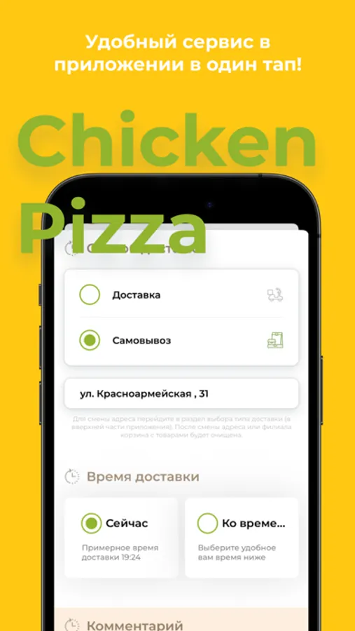 Данное приложение для заказа еды на дом - еще одно преимущество ЧИКЕН ПИЦЦЫ.