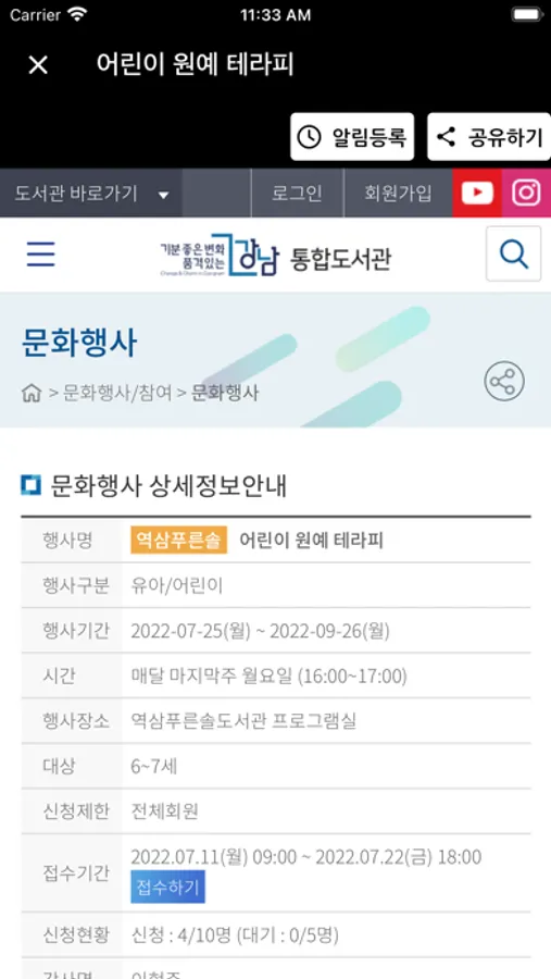 전국의 공공도서관(교육청,구립,시립,군립) 에서 개별적으로 운영하는 평생 학습 프로그램을 통합하여 검색 하는 서비스 입니다.