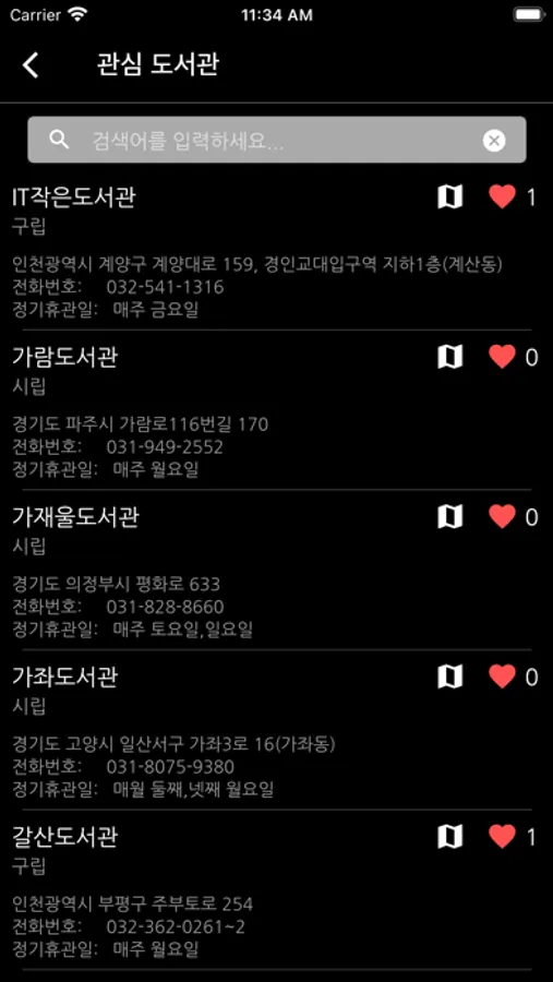 - 지도를 통한 도서관 정보 / 강좌 조회