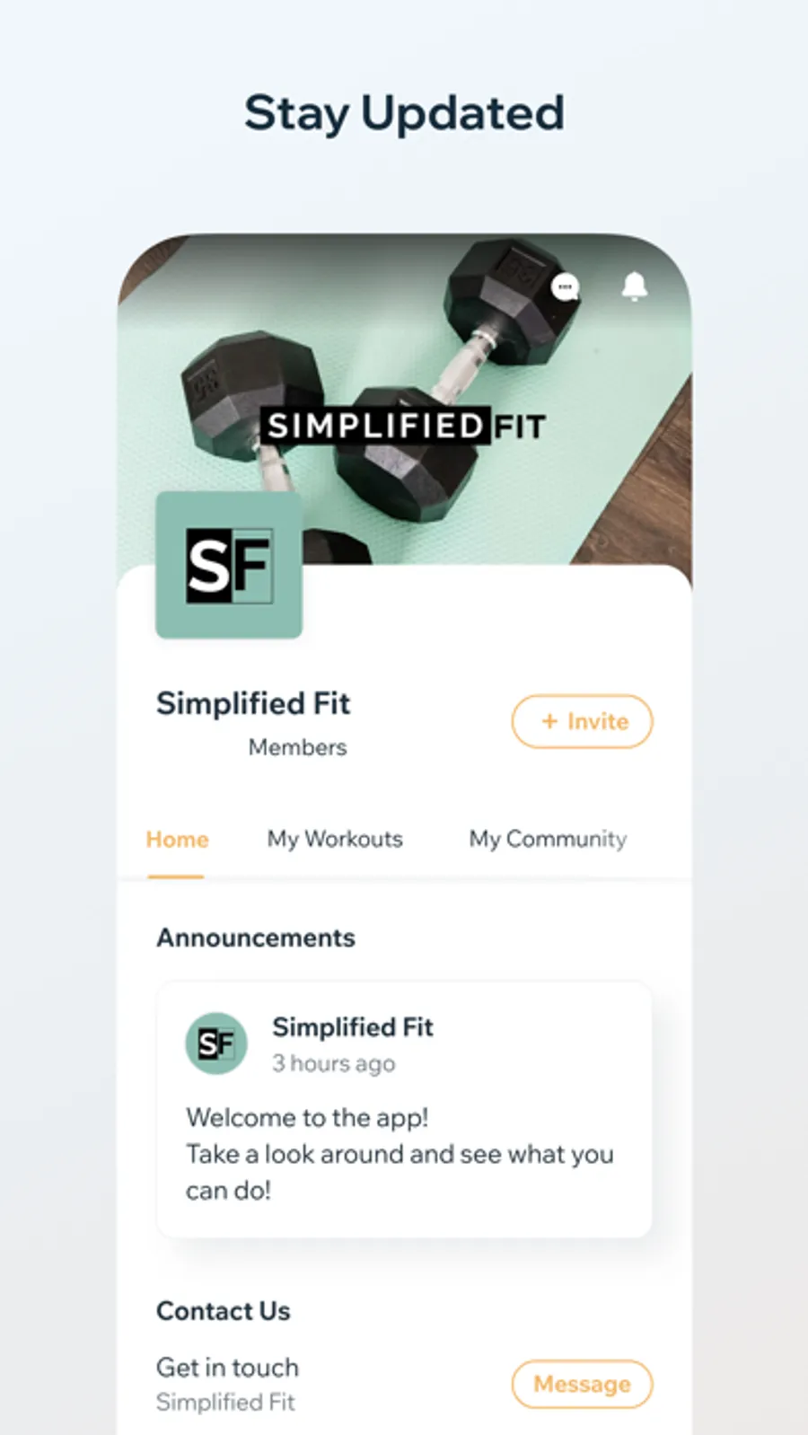 Receive NEW weekly workouts using minimal equipment like dumbbells and loop bands. Stay motivated and encouraged inside the private in-app community. Welcome to Simplified Fit!