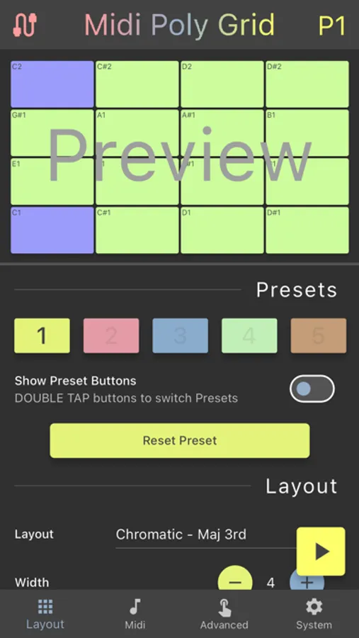 This app aims to be an easy-to-use pad input device featuring a variety of layouts, intuitive playability and modern modulation options, such as MPE and Polyphonic Aftertouch. It was designed for people that prefer pads to pianos! The focus of this app is not to be a jack-of-all-trades Midi swiss army knife, but instead to be a great at one thing: Intuitive and versatile pad controls.