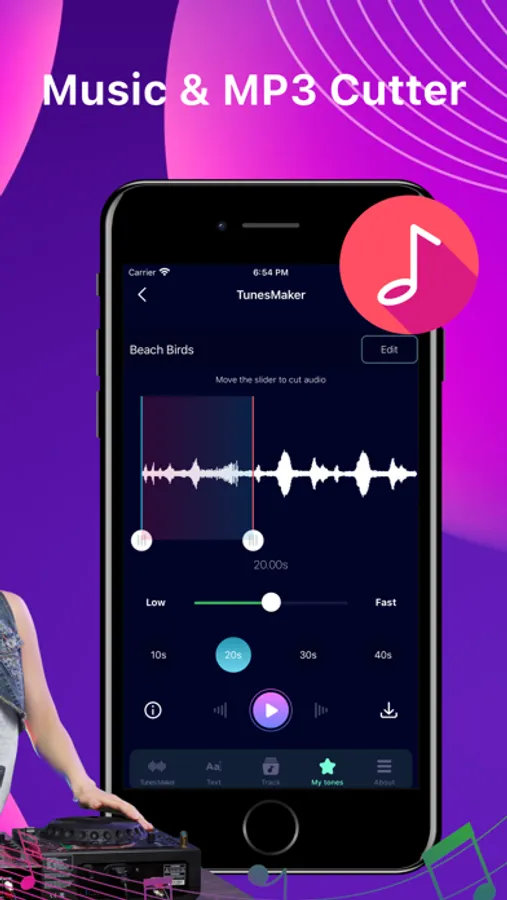 Create your favorite ringtones by cutting available tones and recording any sound you want.