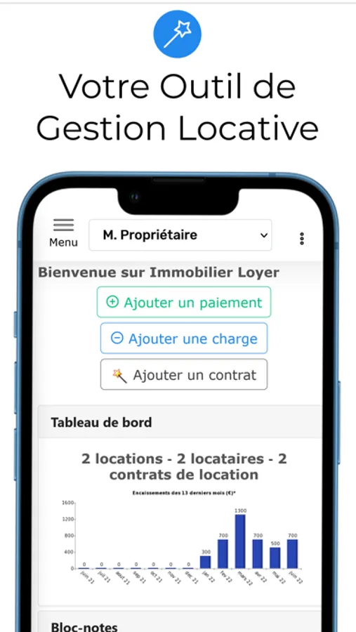 Cette application est destinée aux propriétaires bailleurs et aux SCI. L'application est simple et très facile à prendre en main : en quelques clics, vous gérez vos locations comme les pros.