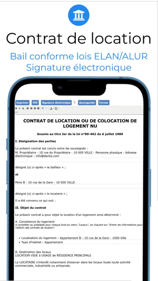• Contrat de location, conforme lois ALUR/ELAN/CLIMAT, avec signature électronique
