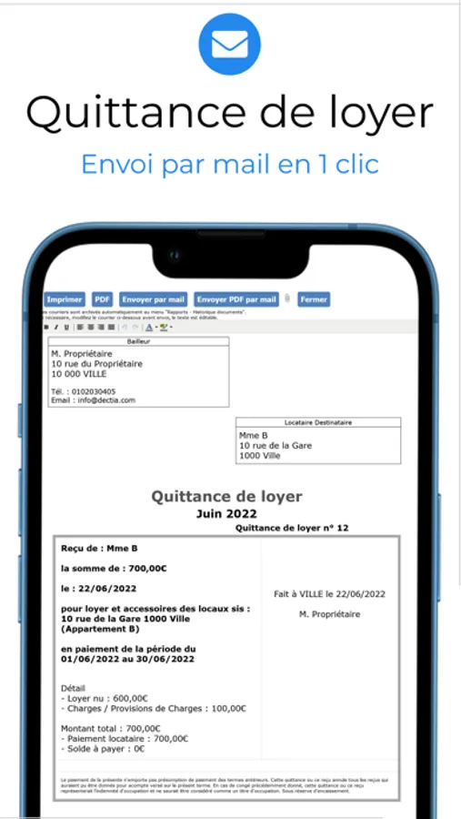 • Appels et quittances de loyers, avec envoi par mail en 1 clic
