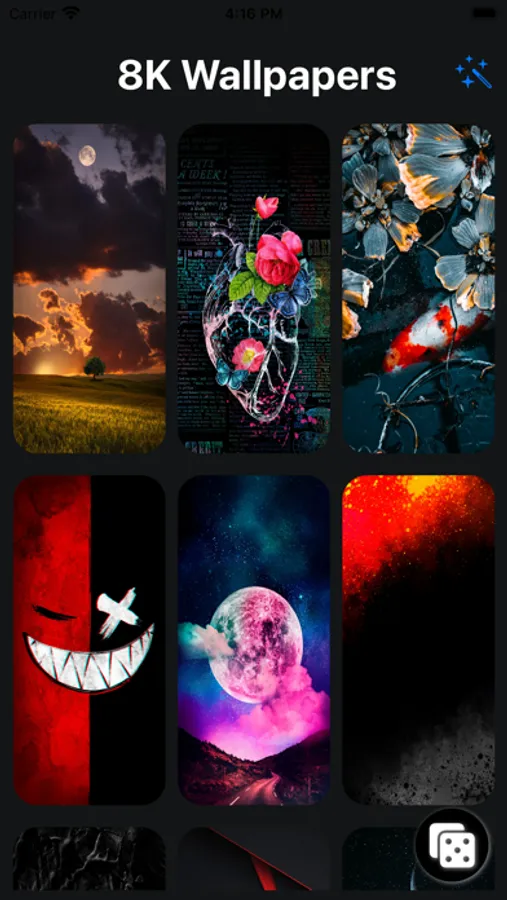 And that's it! The app also has a dice button where it will randomly pick a wallpaper for you and download it to your Camera Roll!