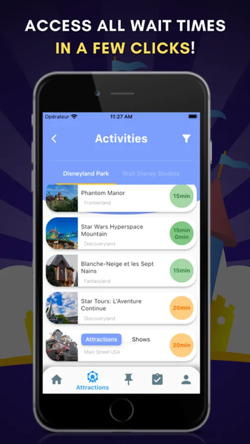 * Access new information and tips, as well as attraction wait times and show schedules!