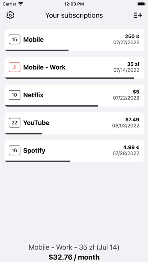 Productive: Peck me shows a duration and expiration dates of all your subscriptions in one place!