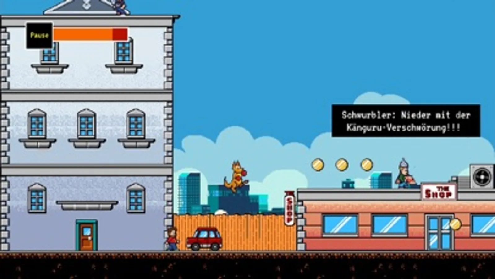 Um einen schönen Abend im Kino zu verbringen, müssen das Känguru und Marc-Uwe eine ganze Horde von Unholden überwinden, die durch eine vermeintliche "Känguru-Verschwörung" sehr aufgebracht sind. In drei Levels wird gerannt, gesprungen und geboxt, es werden atemberaubende Stunts mit dem alten Fahradanhänger von Jesus vollführt, und im Kino erwartet Marc-Uwe dann eine ganz eigene Herausforderung. Viel Spaß mit den irren Abenteuern unseres Heldenduos in diesem Prolog, der die Geschehnisse des Spiels zum neuen Film einleitet!