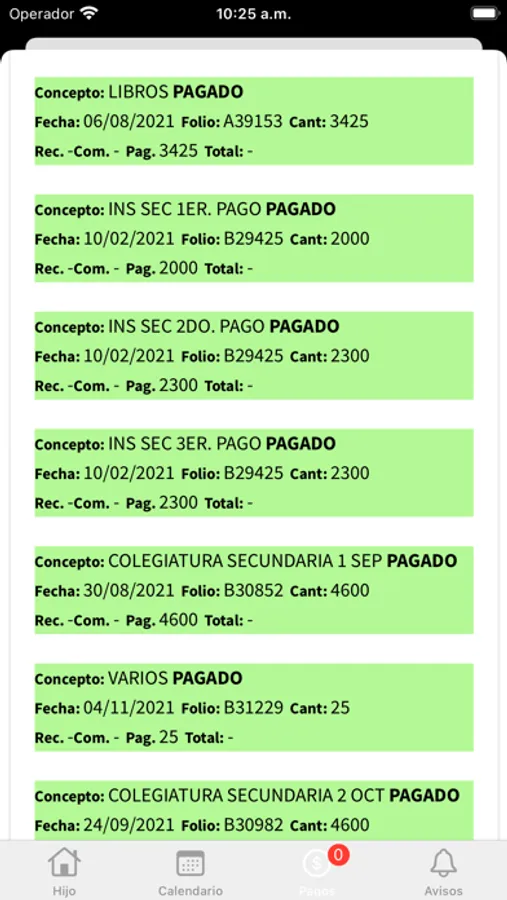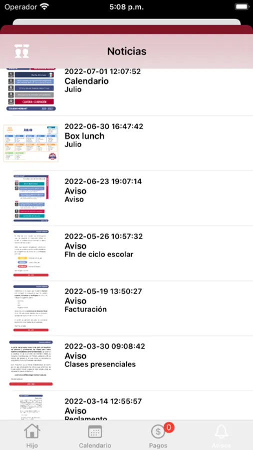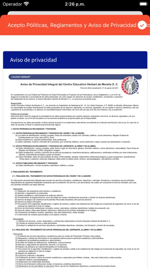 App para uso de alumnos y padres de familia del colegio, con información relativa a su estado académico y administrativo.