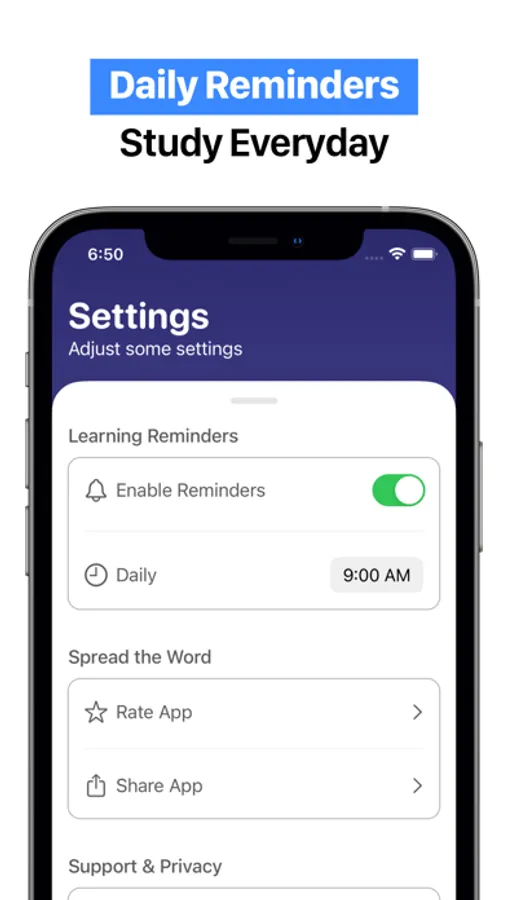 - Daily Reminders is a great helper for you so you don't miss a day studying for your exam