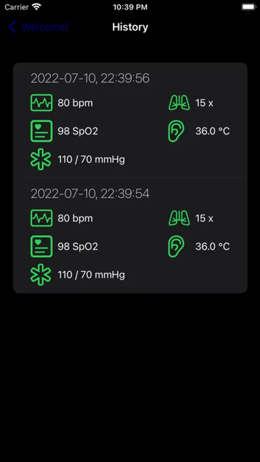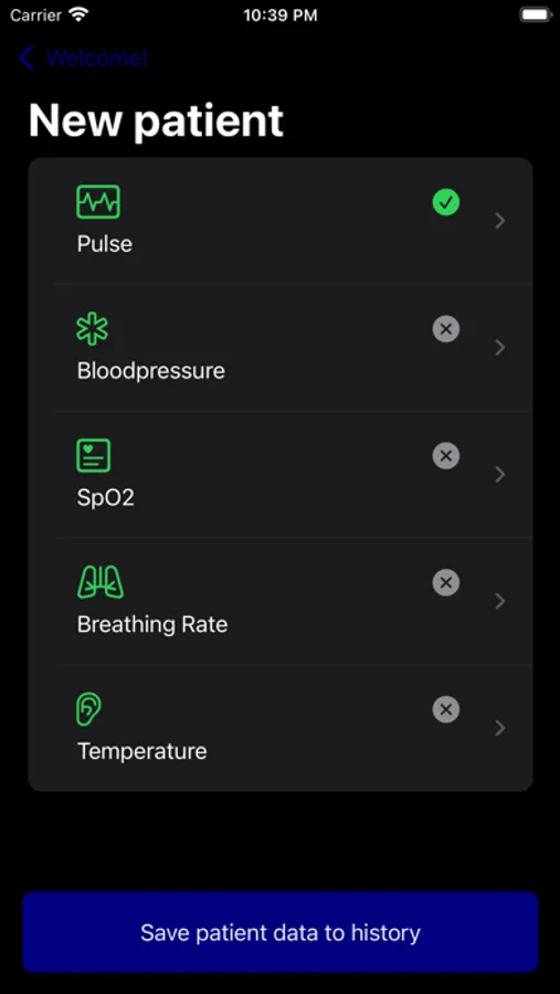 The app offers a history in which all stored patients (anonymized, of course) can be accessed.