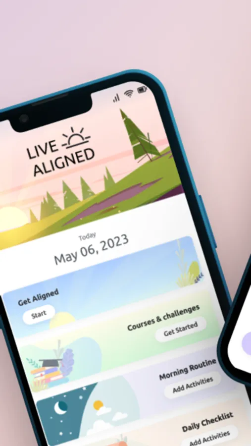 - Answer questions to Get Aligned in the morning and reflect on your day in the evening