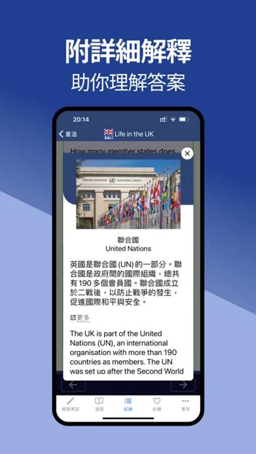 每條題目都附有詳細解釋及圖片,希望用戶能更容易明白題目內容,加深記憶。