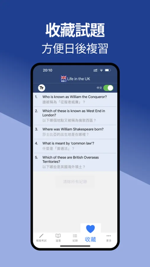 在進行模擬考試時,用戶更可以收藏題目,待完成考試後方便重點重溫。