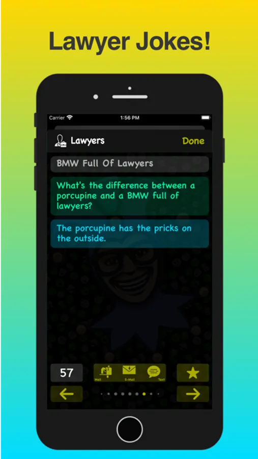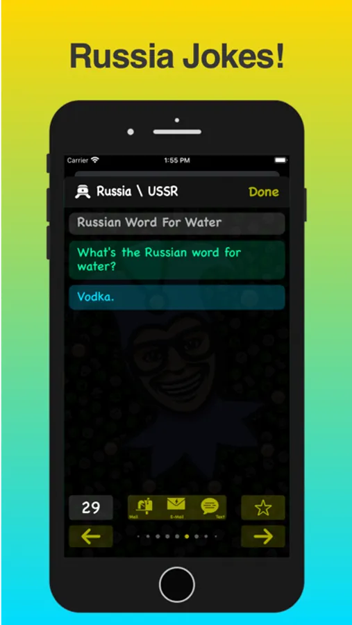 ○ Share each joke while viewing via Email, Text and Local Postal Service.