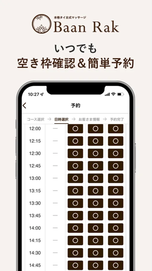いつでもお手元のスマートフォンからご希望のお時間帯のチェック・ご予約が可能です。