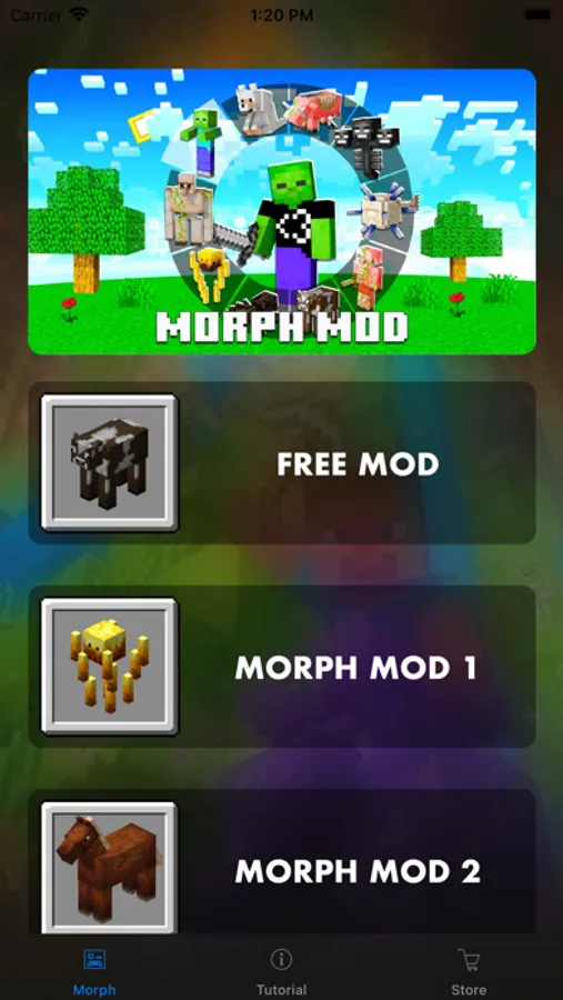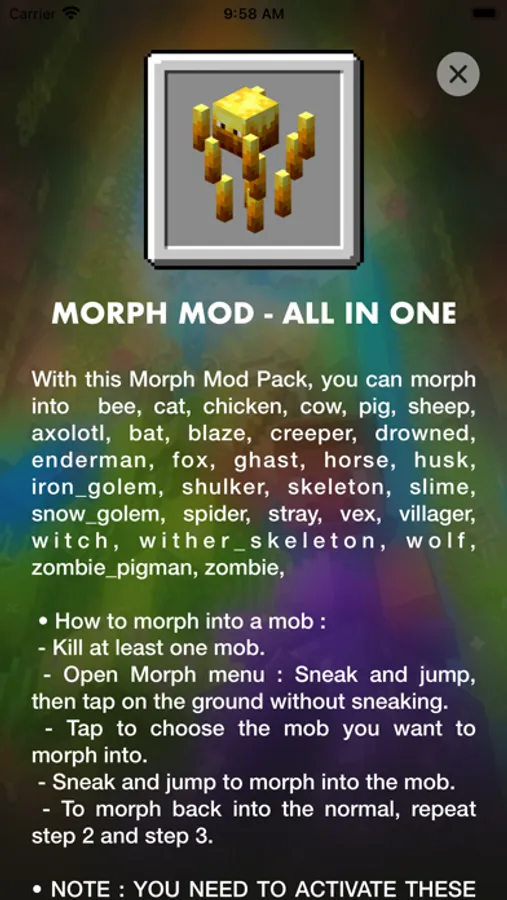 This Add-on allowed you to morph into 30 mobs from Minecraft