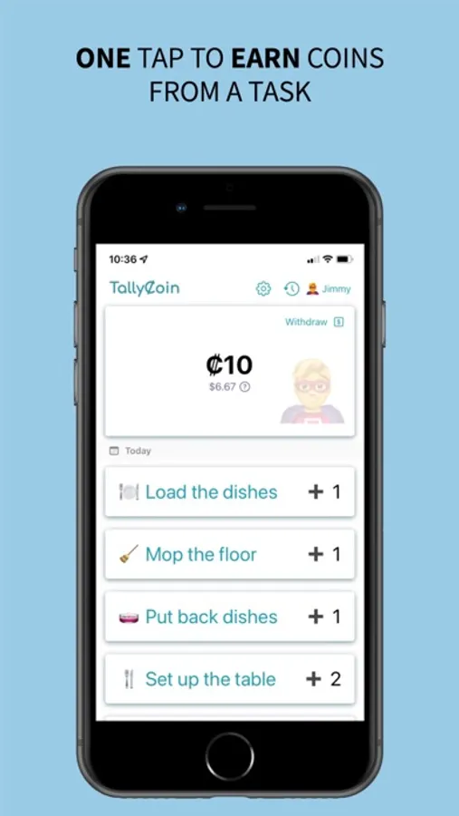 To keep track of the chores and rewards, we tried pencils and paper, whiteboard, and some tally apps. They were all good options, but we always missed some convenience. This is why we created TallyCoin.