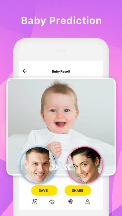 - Generate your baby's face! and have fun! We use advanced machine learning algorithms to create your child's face from your face and the celebrity you like. The photo should be in portrait for the best result.