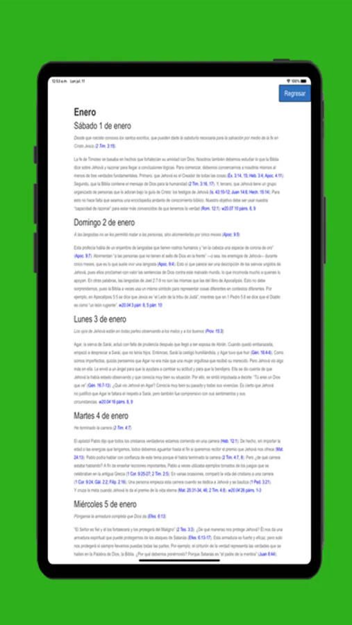 La mejor aplicación para poder leer los textos diarios de Jehová, los cuales los tendrás diarios como por mes para que no te pierdas de ninguna lectura y de sitios que te ayudaras a ti y a tu familia como guía en un mundo tan complicado.