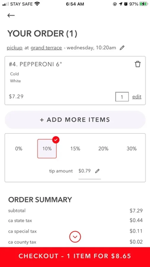 Order your favorite Sub or Salad, apply your rewards, and Pay right in the app