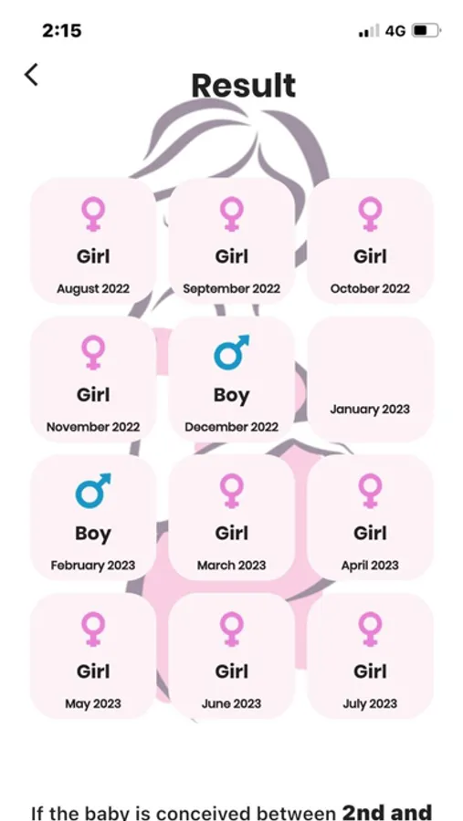 Uncover the mystery of your baby's gender with Baby Gender tracker! This app helps you to get an idea about whether it is a boy or girl by analyzing your age and month of conception. Download now and be prepared for the most exciting journey ever - discovering the sex of your unborn child!