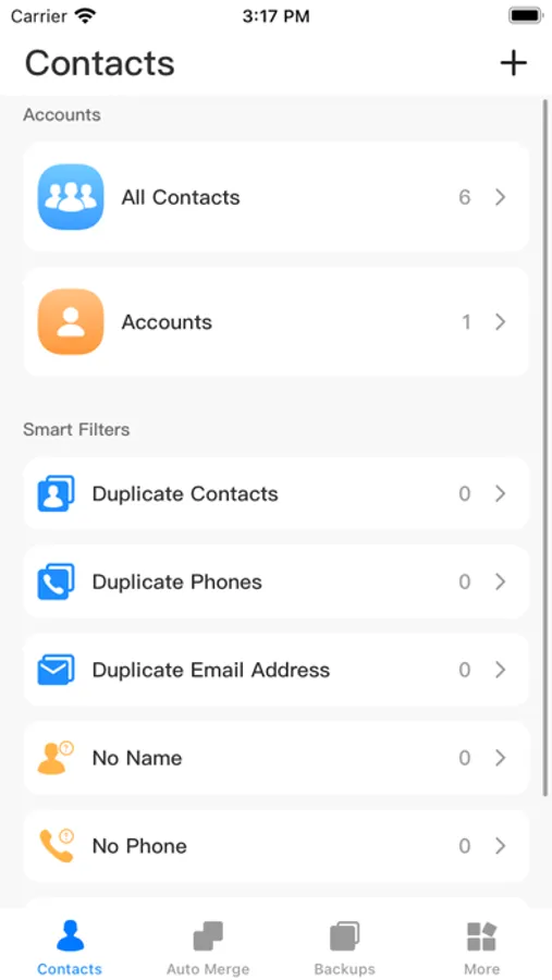 Contacts Cleanup Plus can help you to remove duplicate contacts in one tap, also it supports Recycle Bin.